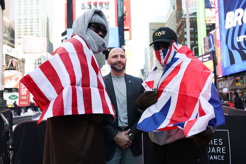 У понеділок, 2 лютого, на Таймс-Сквер у Нью-Йорку американський і британський бійці вперше зустрілися перед майбутнім боєм і провели традиційну дуель поглядів.