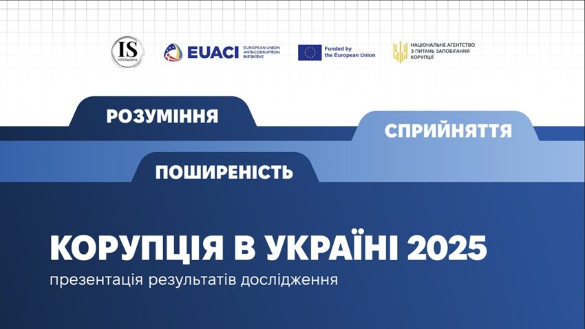 НАЗК спільно з Антикорупційною ініціативою Європейського Союзу в Україні (EUACI) проводять презентацію результатів соціологічного дослідження «Корупція в Україні 2025: розуміння, сприйняття, поширеність».